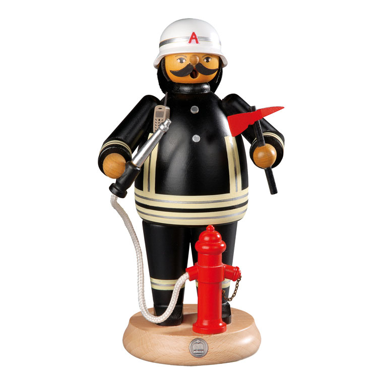 Der Feuerwehrmann als Räuchermann von der Firma Müller aus Seiffen. Voll im Einsatz mit Wasserspritze und Beil ist er für den Einsatz in Ihrer Wohnung geeignet. Sie benötigen nur noch die Räucherkerzen und der Feuerwehrmann wird die Räucherkerze nach ca. 10-15min bestimmt gelöscht haben.
