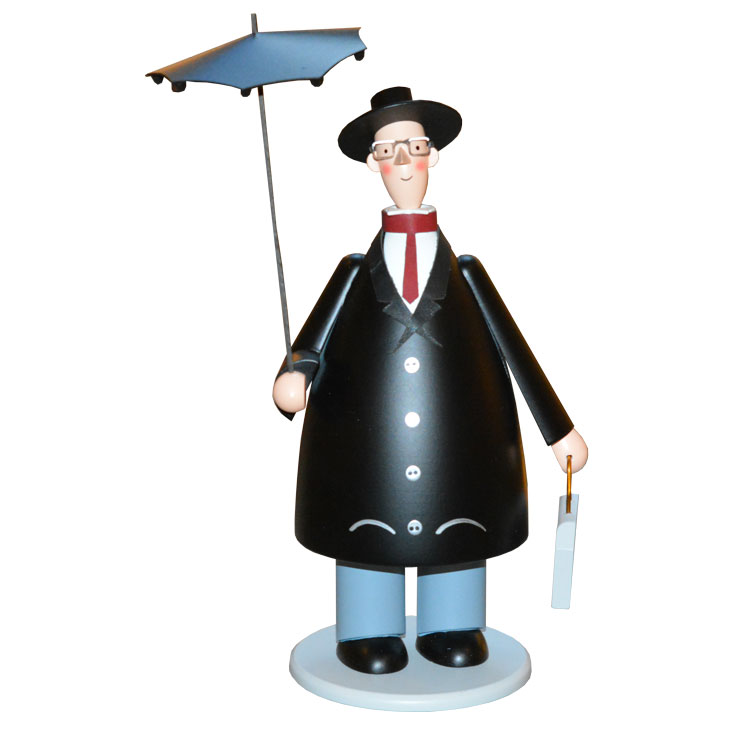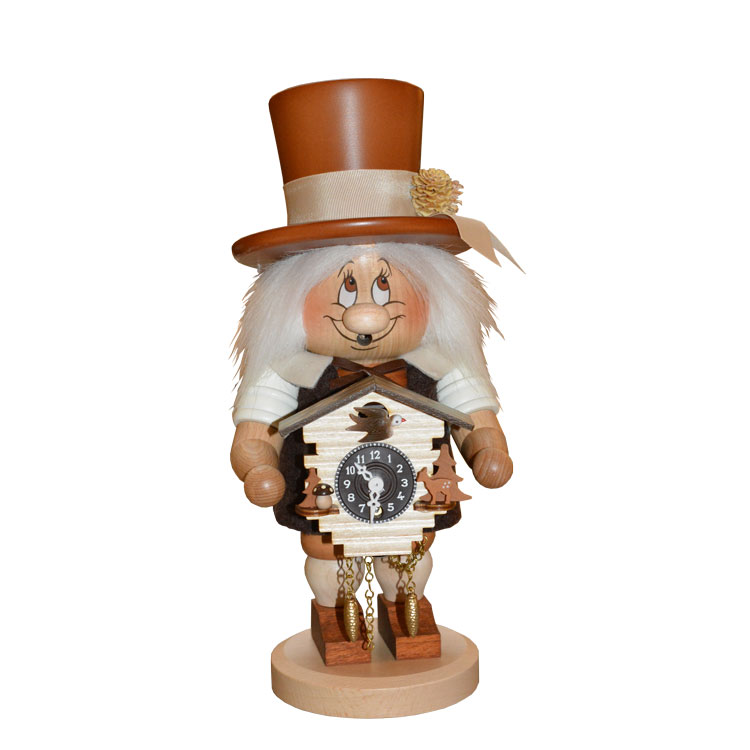 Der Schwarzwälder Wichtel ist ein ganz besonderes Räuchermännchen aus dem Hause Ulbricht. Er trägt eine wunderschöne Kuckucksuhr, die mittels einer Knopfbatterie voll funktionsfähig ist. Die Figur zeichnet sich durch höchste Qualität und künstlerische Gestaltung aus.
