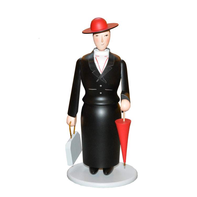 Diese vornehme Dame ist auf dem Weg zur Arbeit oder zum nächsten Kunden. Diese Figur gehört zu den Räucherfiguren.