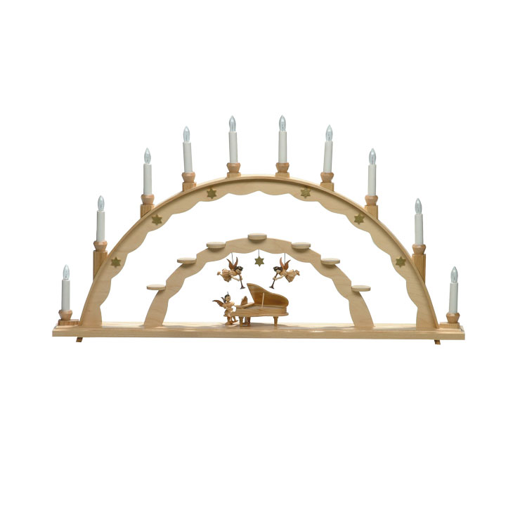 Schwibbogen von der Firma Blank aus dem Erzgebirge der mit den eigenen Engel bestückt werden kann. Gibt es auch in einer kleineren Ausführung. Als Sonderbestellung auch ganz ohne Bestückung erhältlich.