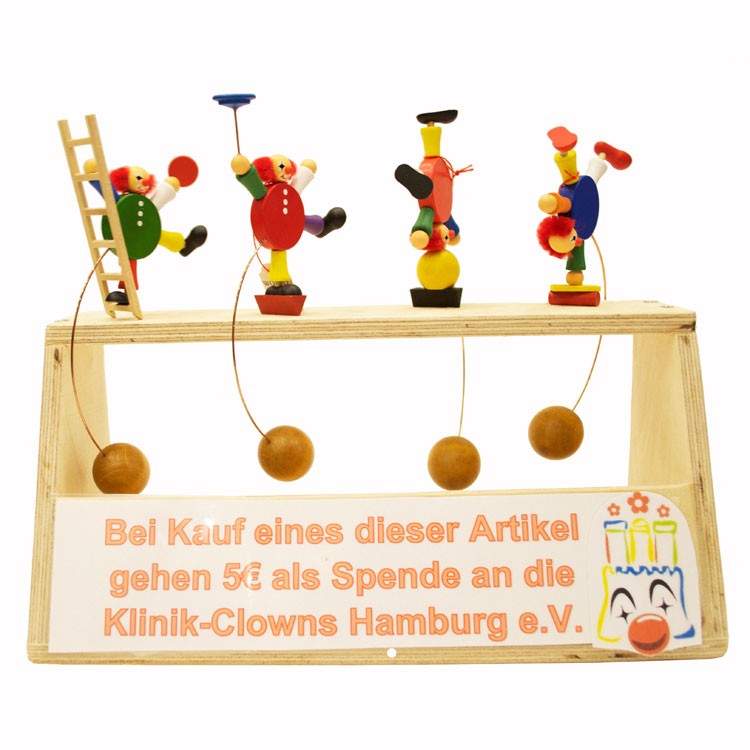 Eine nette Dekoration aber auch als Spielzeug aus dem Erzgebirge bekannt, sind die Schaukelreiter oder Bordreiter von der Firma Wolfgang Werner. Wir führen sehr viele verschiedene Exemplare aus dieser Serie. Mit den Clowns unterstützen Sie beim Kauf die Klinik-Clowns Hamburg e.V. mit jeweils 5€.