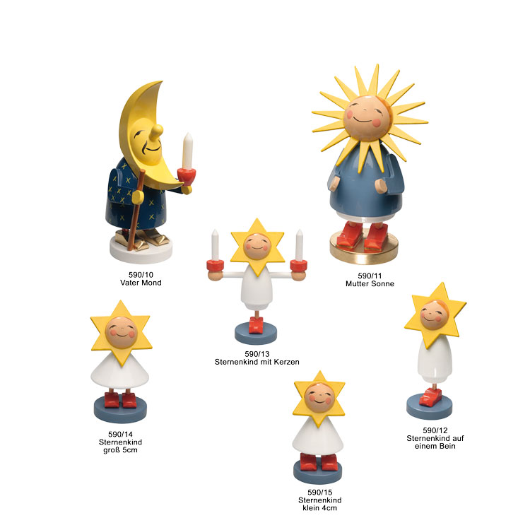 Mutter Sonne, Vater Mond und die vier kleinen Sternenkinder entstammen den künstlerischen Händen von Olle Wendt und sind im Jahre 1925 entstanden.